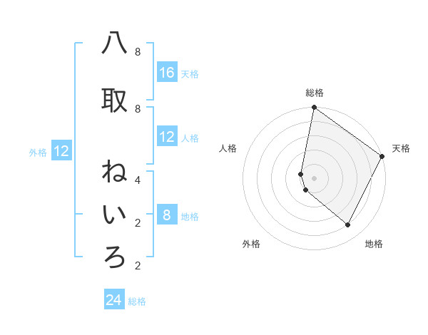 八取 ねいろさんを姓名の画数から五運を鑑定