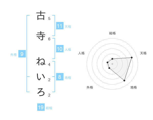 古寺 ねいろさんの天格は11画の4点!