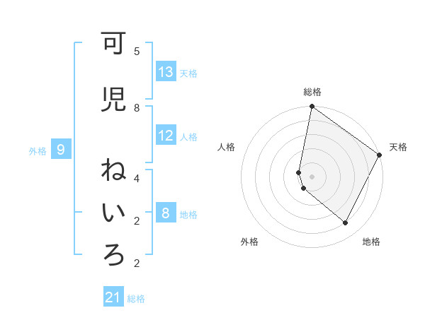 可児 ねいろさんの天格は13画の5点!