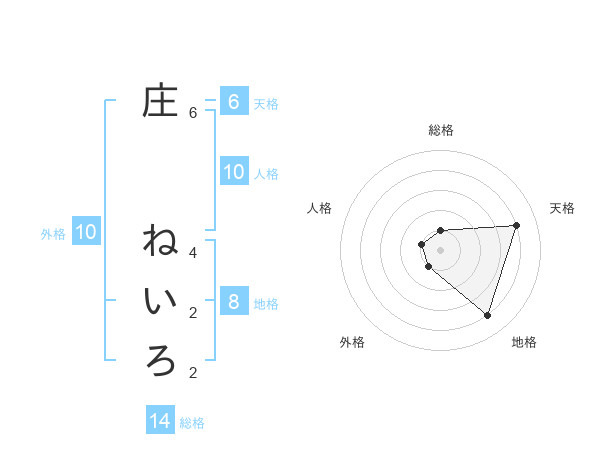 庄 ねいろさんの天格は6画の4点!