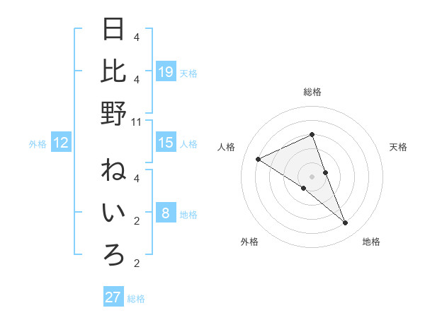 日比野 ねいろさんを姓名の画数から五運を鑑定