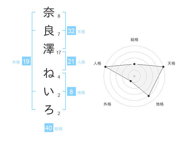 奈良澤 ねいろさんの天格は32画の5点!