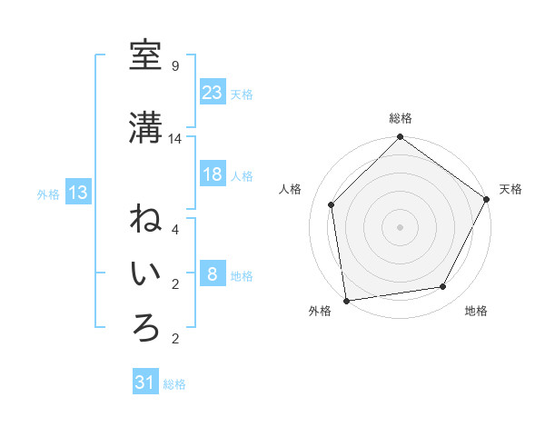 室溝 ねいろさんの総格は31画の5点!