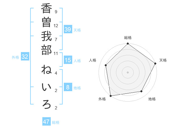 香曽我部 ねいろさんの天格は39画の5点!