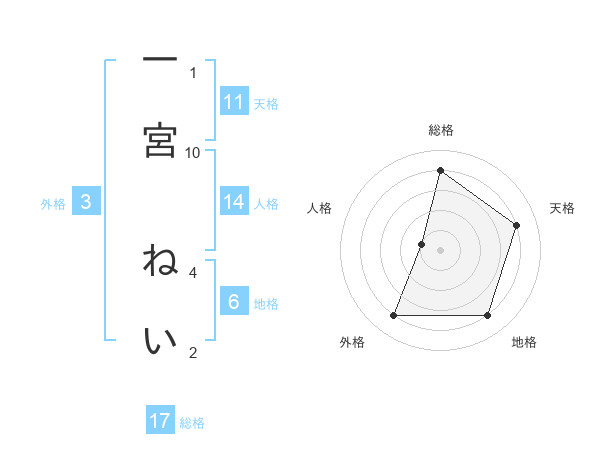 一宮 ねいさんを姓名の画数から五運を鑑定