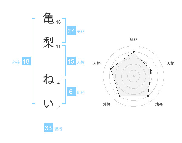 亀梨 ねいさんを姓名の画数から五運を鑑定