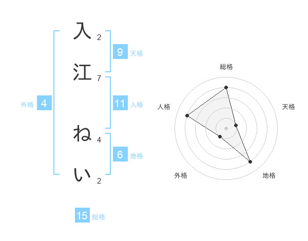 入江 ねいさんの総格は15画の4点!