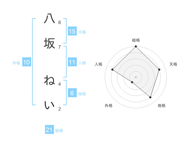 八坂 ねいさんの総格は21画の5点!