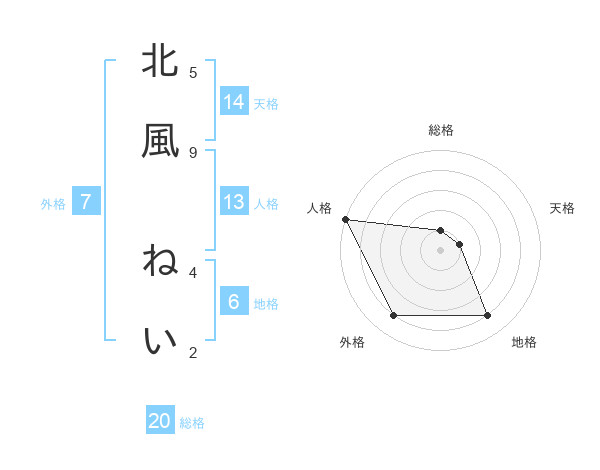 北風 ねいさんの総格は20画の1点!