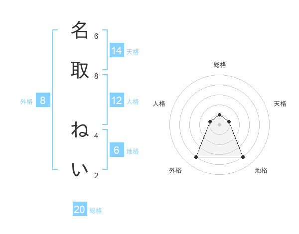 名取 ねいさんの外格は8画の4点!