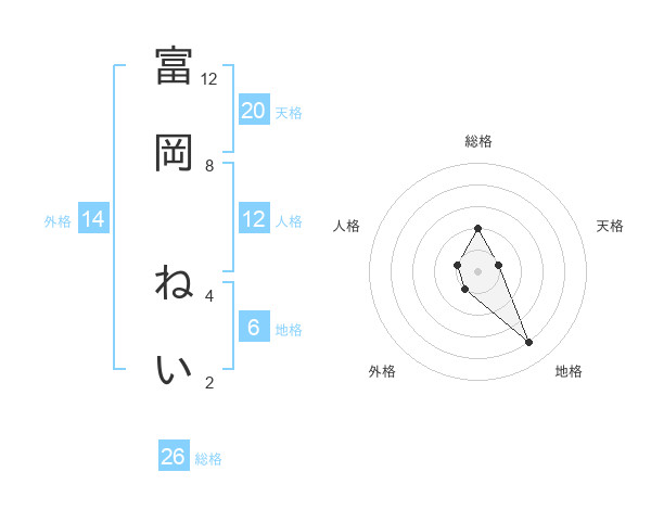 富岡 ねいさんの総格は26画の2点!