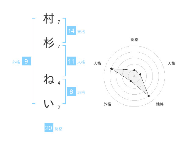 村杉 ねいさんの総格は20画の1点!