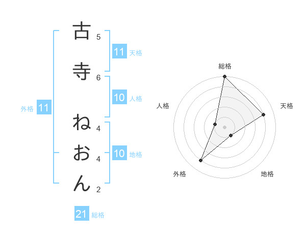 古寺 ねおんさんの総格は21画の5点!