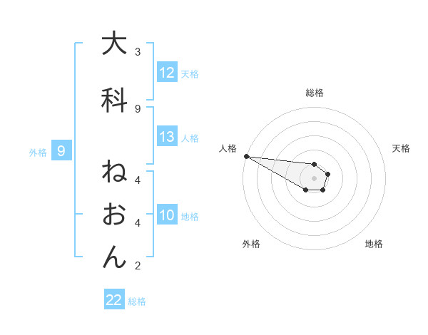 大科 ねおんさんを姓名の画数から五運を鑑定