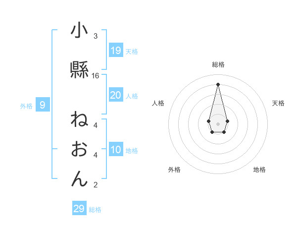 小縣 ねおんさんを姓名の画数から五運を鑑定