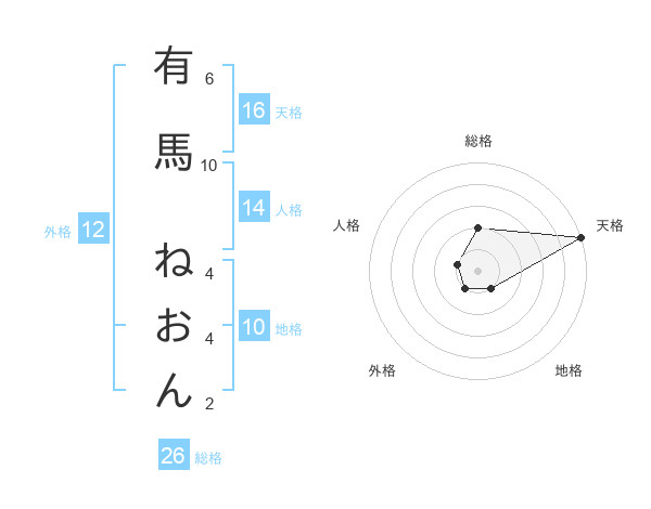 有馬 ねおんさんの天格は16画の5点!