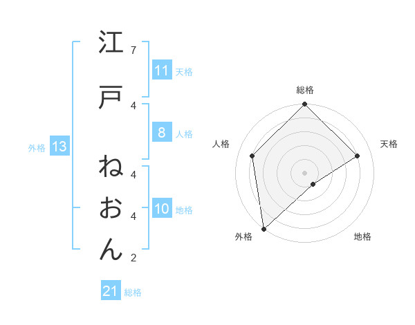 江戸 ねおんさんの外格は13画の5点!