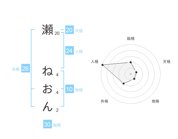瀬 ねおんさんを姓名の画数から五運を鑑定