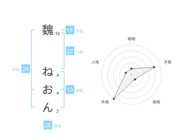 魏 ねおんさんの天格は18画の4点!
