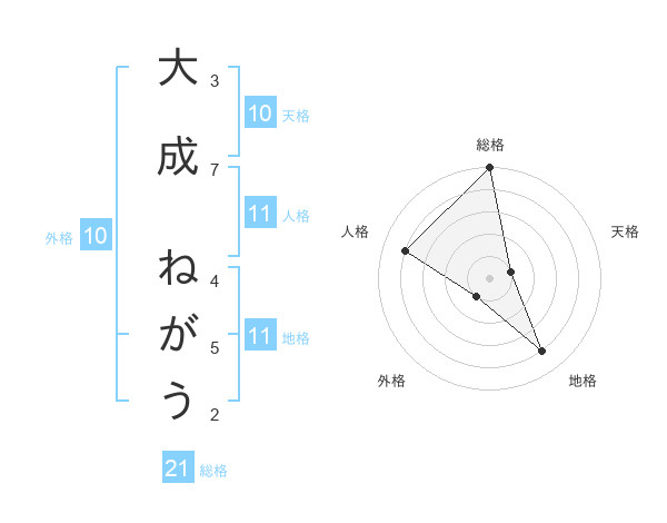 大成 ねがうさんを姓名の画数から五運を鑑定