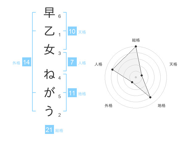 早乙女 ねがうさんの総格は21画の5点!