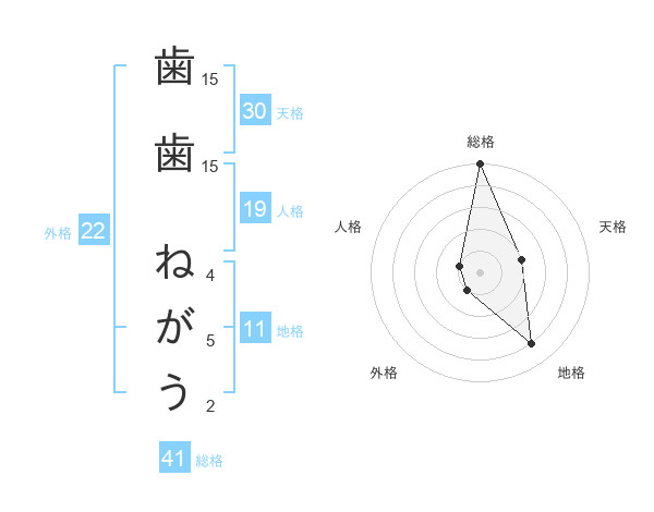 歯歯 ねがうさんの外格は22画の1点!