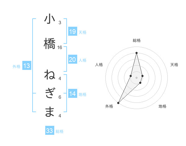 小橋 ねぎまさんを姓名の画数から五運を鑑定