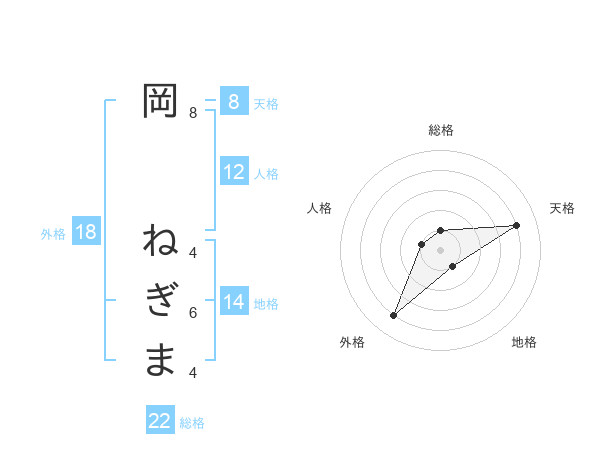 岡 ねぎまさんを姓名の画数から五運を鑑定