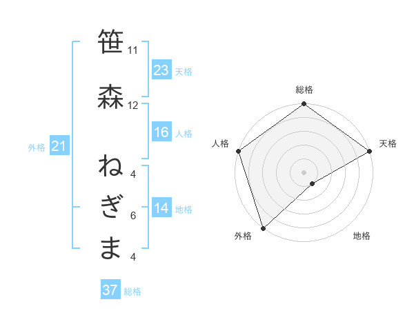 笹森 ねぎまさんを姓名の画数から五運を鑑定