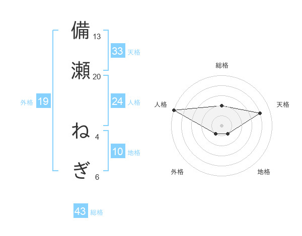 備瀬 ねぎさんを姓名の画数から五運を鑑定