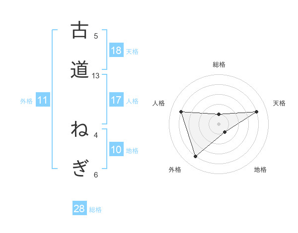 古道 ねぎさんの天格は18画の4点!
