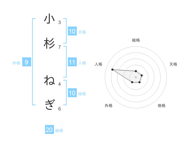 小杉 ねぎさんを姓名の画数から五運を鑑定