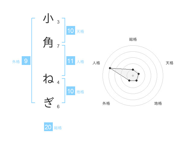 小角 ねぎさんの天格は10画の1点!