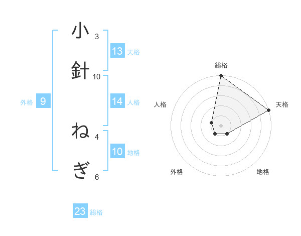 小針 ねぎさんを姓名の画数から五運を鑑定