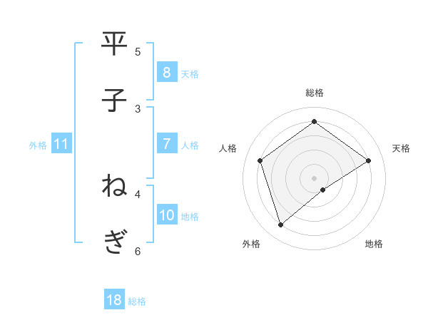 平子 ねぎさんの天格は8画の4点!