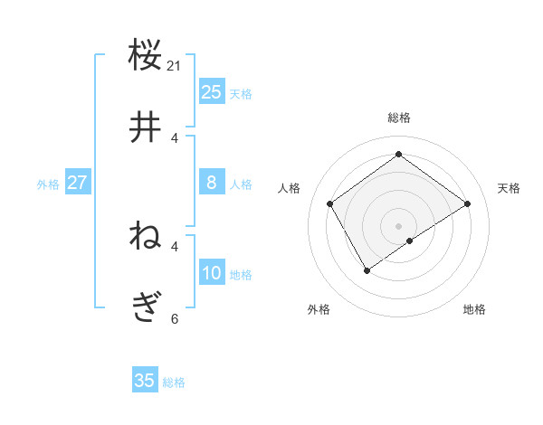 桜井 ねぎさんを姓名の画数から五運を鑑定