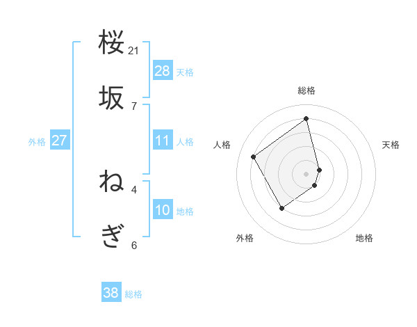 桜坂 ねぎさんを姓名の画数から五運を鑑定