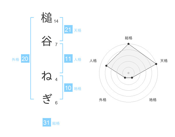 槌谷 ねぎさんを姓名の画数から五運を鑑定