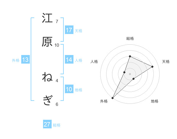 江原 ねぎさんの天格は17画の4点!