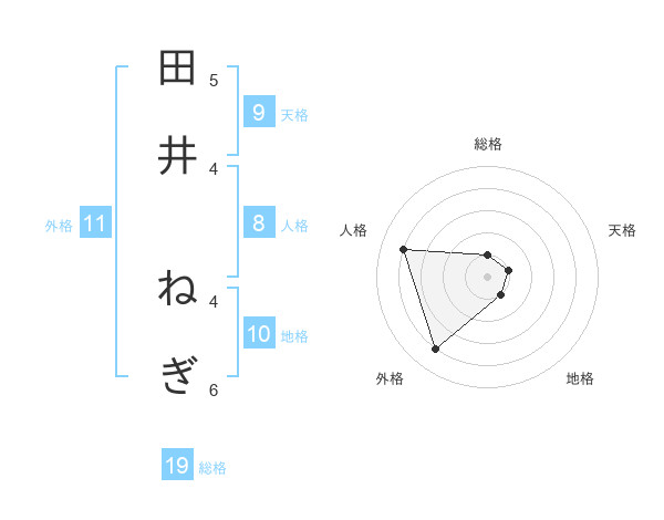 田井 ねぎさんを姓名の画数から五運を鑑定