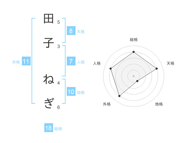 田子 ねぎさんの天格は8画の4点!