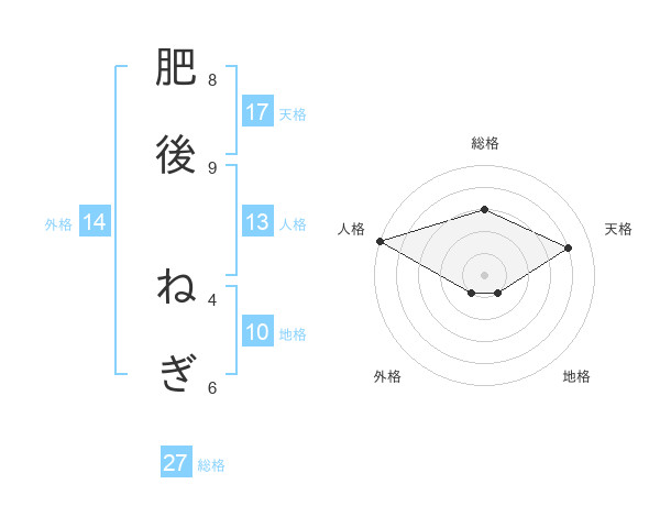 肥後 ねぎさんを姓名の画数から五運を鑑定