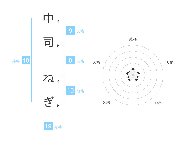 中司 ねぎさんの地格は10画の1点!