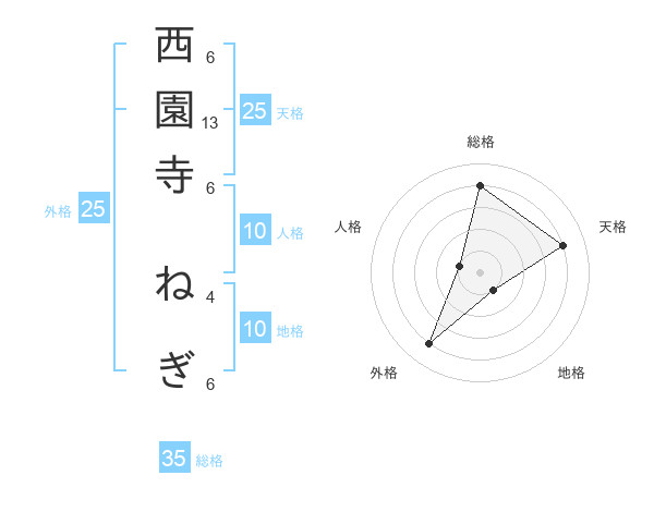 西園寺 ねぎさんを姓名の画数から五運を鑑定