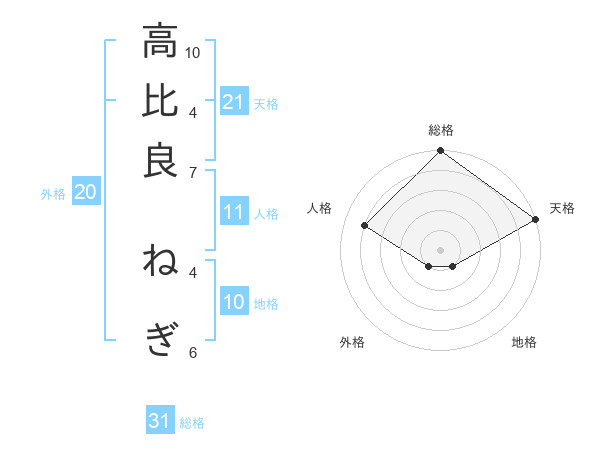 高比良 ねぎさんを姓名の画数から五運を鑑定