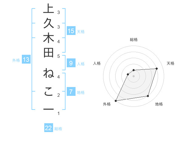 上久木田 ねこ一さんを姓名の画数から五運を鑑定