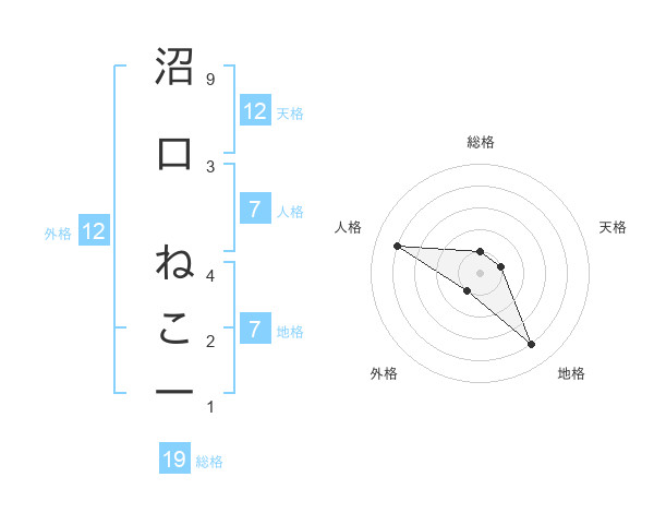 沼口 ねこ一さんを姓名の画数から五運を鑑定