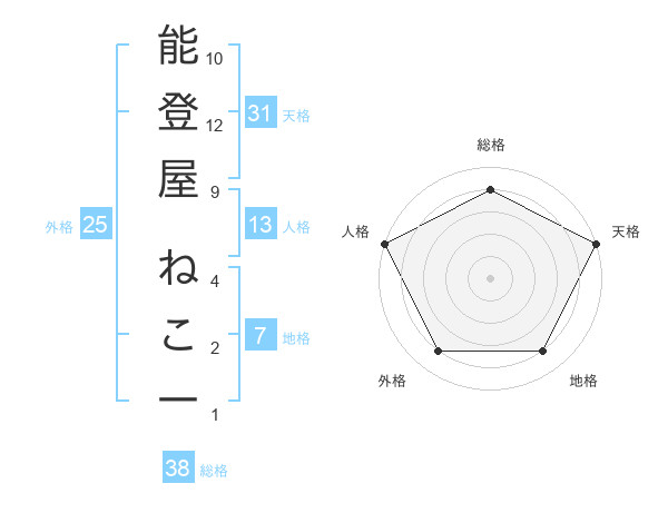 能登屋 ねこ一さんを姓名の画数から五運を鑑定