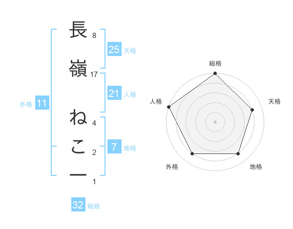 長嶺 ねこ一さんの名前の鑑定結果は!
