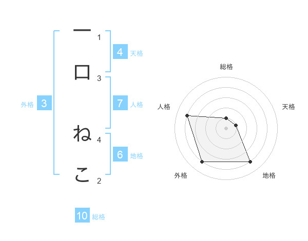 一口 ねこさんの総格は10画の1点!
